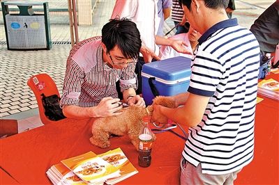 宠物狗接受狂犬疫苗注射。