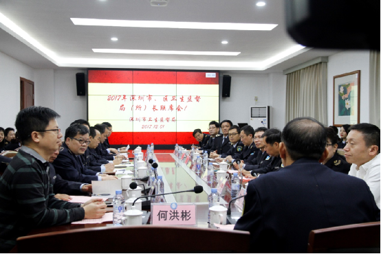 为全面总结2017年全市卫生计生监督工作,提前谋划2018年全市卫生计生监督重点工作开展,12月1日下午,2017年第三次全市卫生监督局(所)长联席会在龙华区卫生监督所4楼会议室及3楼多功能智慧指挥中心会议室召开。市卫计委刘堃副主任、市卫生监督局蔡本辉局长、龙华区刘大岭副区长、龙华卫计局何洪彬局长及各区卫生监督局(所)主要负责人参加了会议。